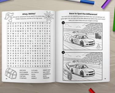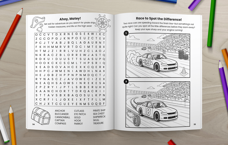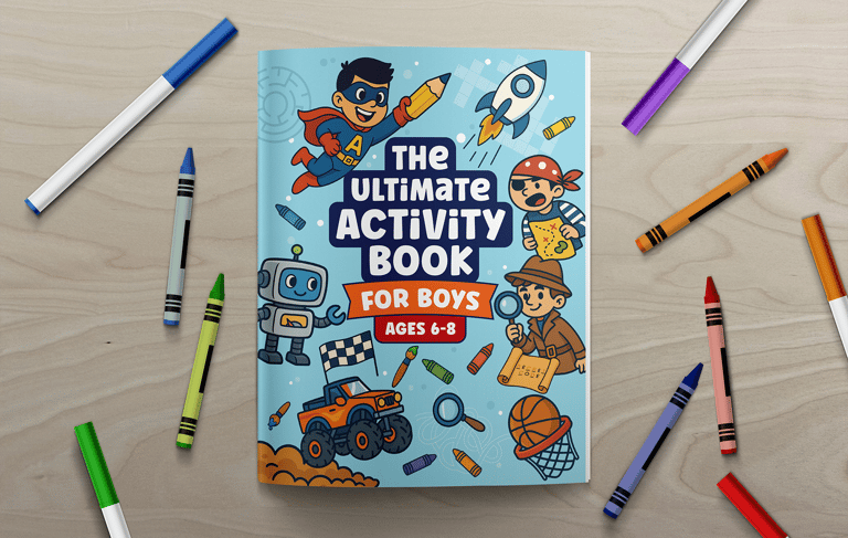Get ready for action-packed adventures, clever puzzles, and creative challenges! Featuring everything from monster truck mazes and robot riddles to pirate puzzles and superhero secret codes. Designed to boost brainpower and spark imaginations, this book offers hours of screen-free entertainment boys will love. Whether it’s spotting the difference, solving mysteries, coloring wild creatures, or cracking spy codes, there’s something exciting on every page!