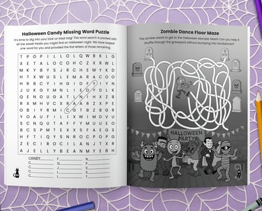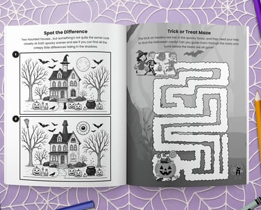 Packed with puzzles, games, coloring pages, and spooky surprises, the Halloween Activity Book for Kids ages 6–8 is the perfect way to celebrate the spookiest season of the year! From haunted house mazes and candy-themed crosswords to silly monster riddles and color-by-number mysteries, each page offers screen-free fun that boosts creativity, problem-solving, and imagination.
