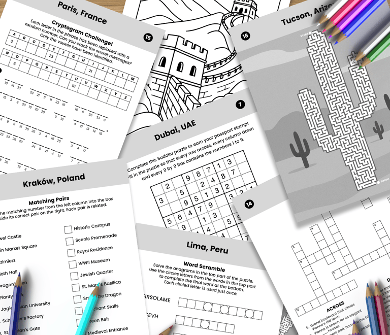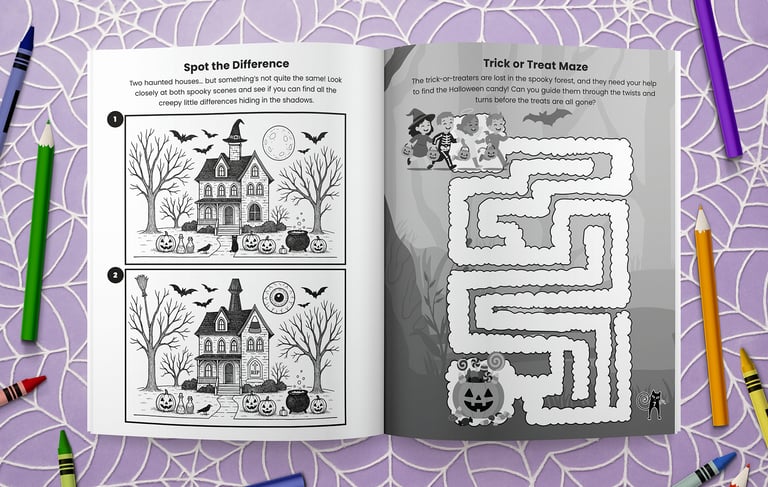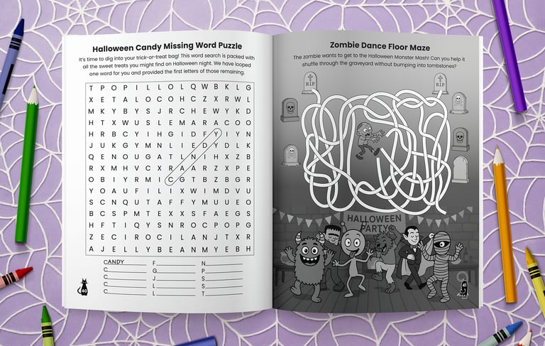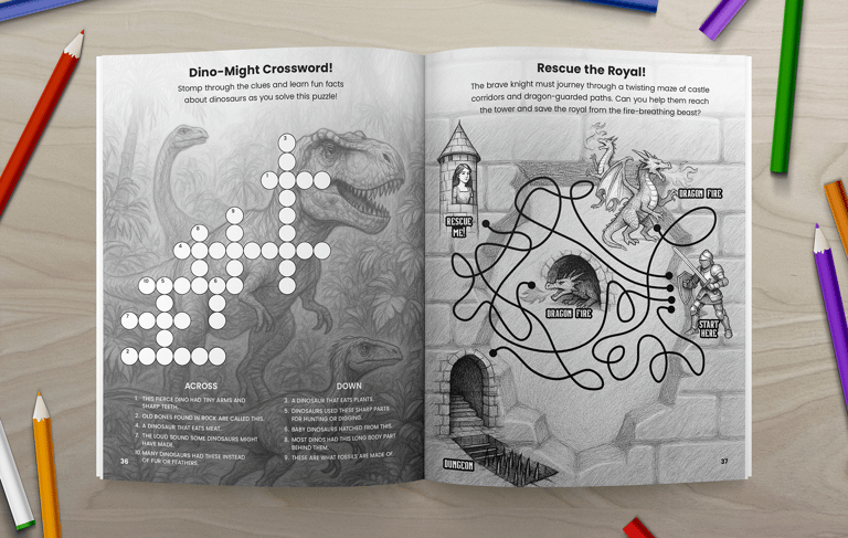 Discover a World of Fun and Challenge! Our Activity Books are packed with a variety of puzzles, mazes, crosswords, cryptograms, word searches, and more—each thoughtfully designed for its audience. Whether it’s the Girls’ or Boys’ Edition, the spooky Halloween Edition, or the All Around the World Edition for adults, every book offers hours of screen-free entertainment, creativity, and brain-boosting fun.