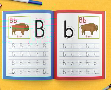 This fun, animal-themed workbook helps preschoolers build pen control and learn to trace both uppercase and lowercase letters using a simple dot-to-dot method. With plenty of lined pages for practice and adorable animal coloring pages, kids stay engaged while mastering the alphabet.
